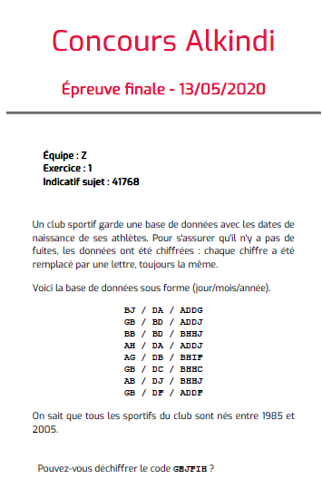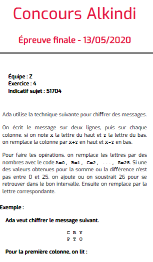 Le concours Alkindi est un concours de cryptographie, pour les élèves de la 4e à la 2de.