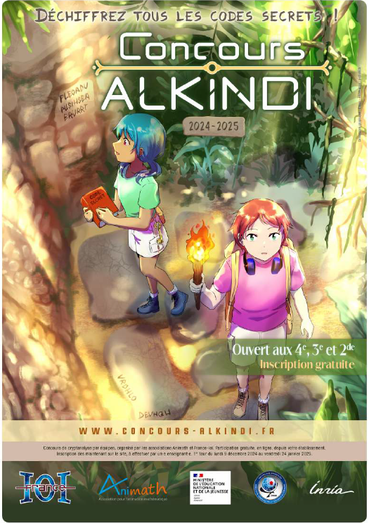 Le concours Al Kindi est un concours de cryptographie ouvert aux élèves de la 4e à la 2de.
