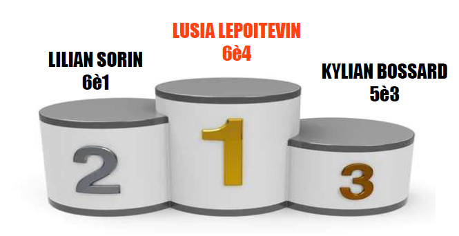 Ils avaient à résoudre 6 énigmes (à raison d’une tous les 10 jours environ). L’heure est à présent au bilan et aux (petites) récompenses. C’est en 4e 5 que les élèves ont été le plus assidus. La première place revient à Laura P, félicitations à elle ! Elle est suivi d’Aedan L, Ewen J, Mathys T, Alexis C, Gabin W et Alexi C qui n’ont pas démérité non plus : bravo à eux et à tous ceux qui ont participé.