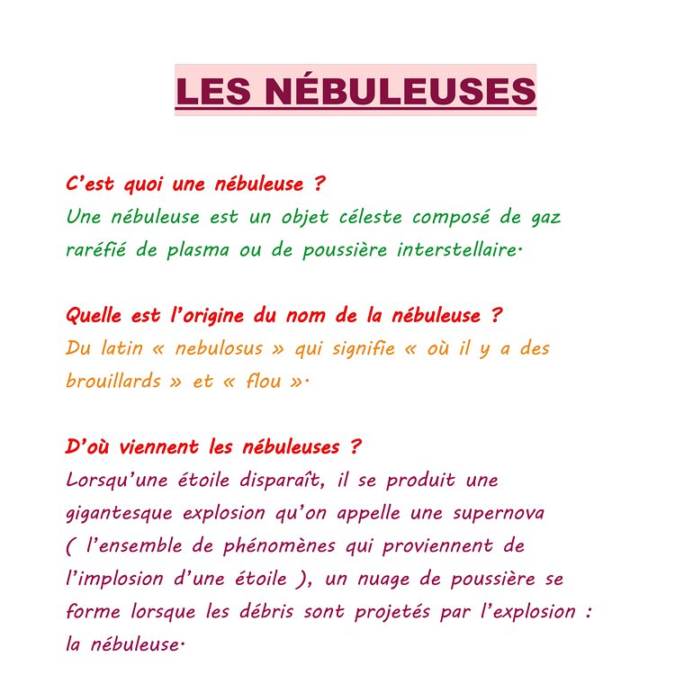 Actuellement, l’équipe approfondit l’étude d’astres ou de phénomènes spatiaux tels que le soleil, les astéroïdes, les nébuleuses planétaires, les trous noirs ou encore les étoiles filantes, qu’ils seront amenés à exposer devant leurs camarades.