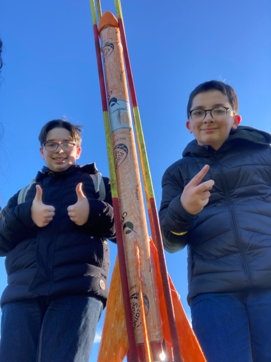 5-4-3-2-1-0 : mise à feu …. Décollage. Sous un beau soleil, le lancement des 10 engins a eu lieu l’après-midi au stade Georges Martin. Les fusées ont atteint une altitude de 100 m avant de retomber avec l’ouverture du parachute sous les yeux ravis des élèves .