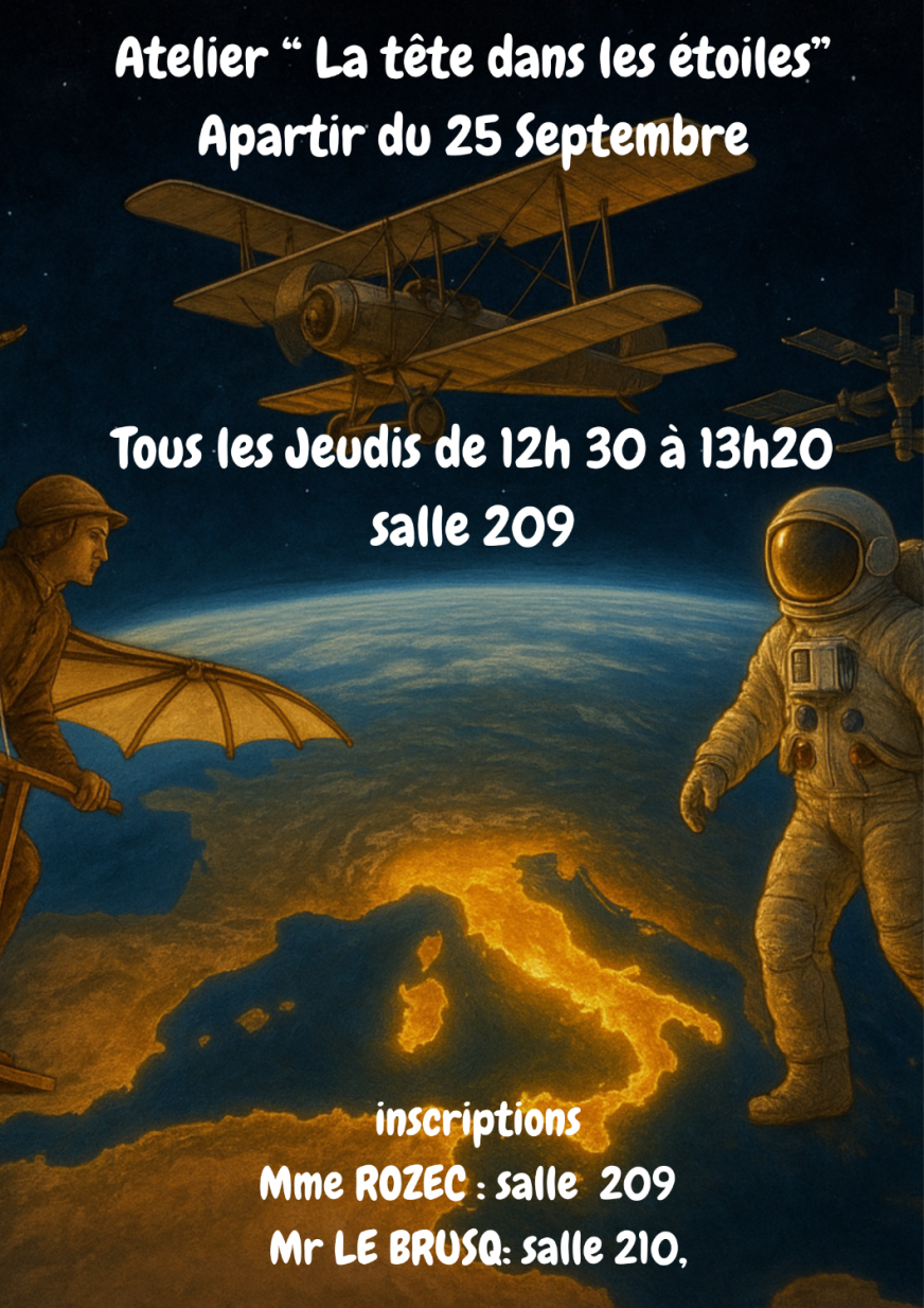 L’atelier “La Tête dans les étoiles” réunit deux fois par mois un petit groupe d’aventuriers de Sixième, motivés par l’écoute, l’observation du ciel, et l’étude des astres.