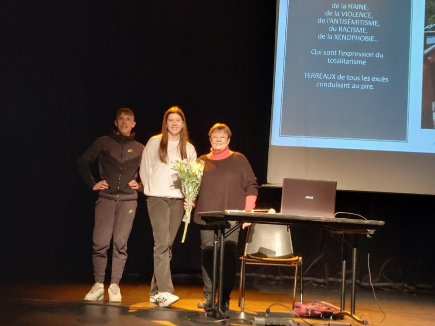 Dès 1943, ce jeune lycéen s’engage dans la Résistance avec son frère et sa soeur dans le Mouvement Libération Nord. C’est dans leur ferme de Plougasnou, qu’ils accueillent un réfractaire au STO ou encore un aviateur canadien descendu par les nazis. Mais malheureusement la famille est dénoncée par un autonomiste breton. Son frère et sa soeur sont fusillés, alors qu’Emile est déporté vers Struthof dans l’Alsace récemment intégrée au Reich. Ne sachant rien du sort de sa famille. Il subira multiples souffrances et dégradations de sa dignité d’être humain, mais la solidarité chevillée au corps, il réussira tant bien que mal à survivre… ou à « revenir », comme le dit Mme Moal. Son action ne s’arrête pas là, car, toute sa vie il s’impliquera dans le syndicalisme. A l’occasion d’un temps d’échange, les élèves ont pu méditer sur le sens du mot « Engagement » et les périls qui menacent nos valeurs républicaines.