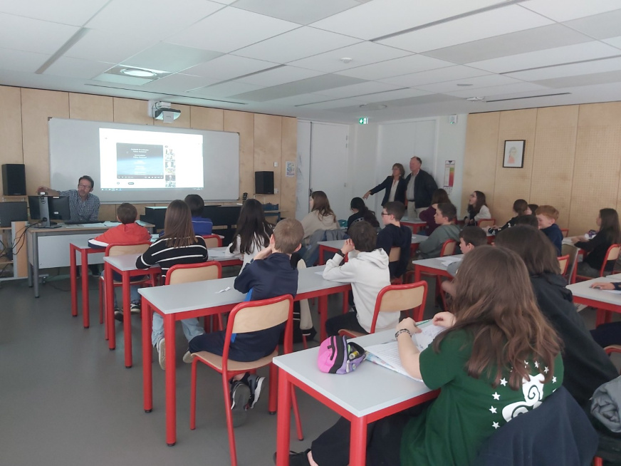 Ce lundi 31/03, les élèves de 6e se sont rendus à l’école Jean Monnet afin de rencontrer les autres enfants avec qui ils partiront en voyage. C’était également l’occasion d’effectuer un appel vidéo avec des élèves d’Espagne, qu’ils rencontreront une fois sur place.
